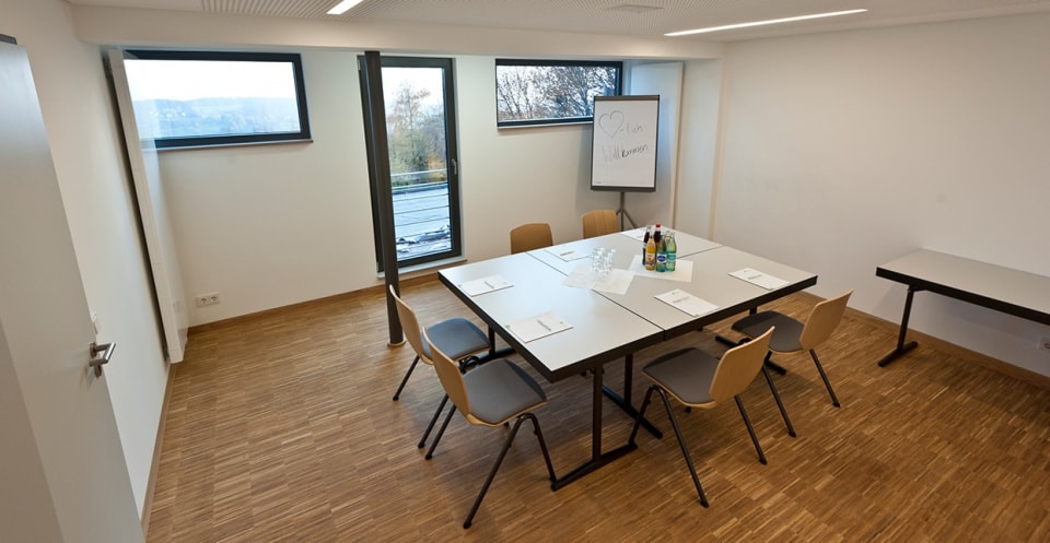 Unser Gruppenraum Ambiente ist lichtdurchflutet und bietet auf 23 qm Platz für 8 Personen. Wählen Sie aus unserem Angebot die passende Mischung aus technischer Ausstattung und Bewirtung.